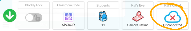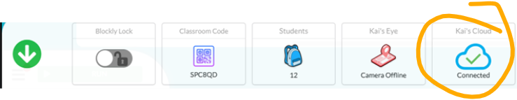 If you find that in your teacher account your bots are working and your "Kai's Cloud" is connected, but your student devices the "Kai's Cloud" is not connected.